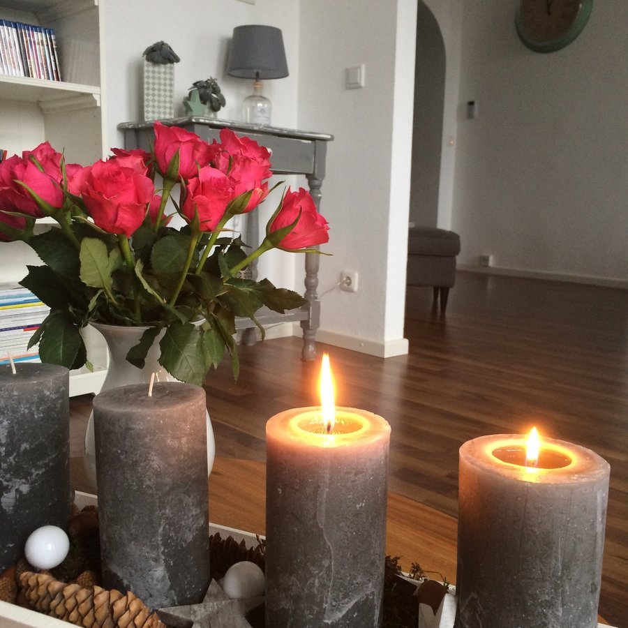 Adventskranz, Wohnzimmer, Blumen, Kerzen