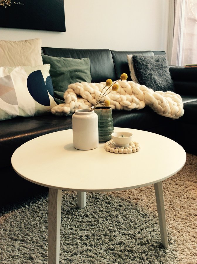 Dafür mit den Armen habe ich diese Decke gestern Abend schnell gestrickt. Es ist erstaunlich wie schnell das geht! Muss aber sagen, dass mir das Stricken mit Nadeln eher liegt. Ich fühlte mich gestern während ich so auf'm Sofa saß und armknitting machte etwas gefesselt