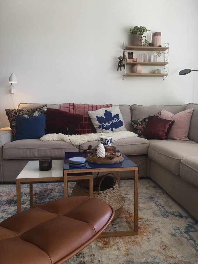Grundlegend ändere ich hier wenig - die Möbel stehen und hängen so nun einmal am besten 😁 - dafür ändere ich regelmäßig die Farben in Kissen,- Vasen,- Blumenpötte,- Pflanzen,- Decken-Form.