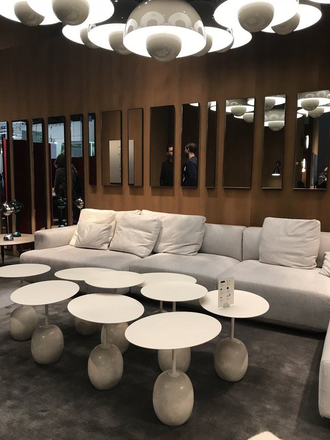 Ich kriege das Bild nicht aus meinem Kopf. Es ist wie ein Ohwurm nur eben vor dem inneren Auge. Der Stand von &tradition hat mit ziemlich gut gefallen, auch wenn das neue Sofa nichts Außergewöhnliches ist. Der Himmel aus großen Flowerpots und die Gruppe der Beistelltische korrespondierten einfach ganz gut. Die Tische finde ich allerdings für eine Familie nicht geeignet, da sind nicht ganz kippeicher sind.