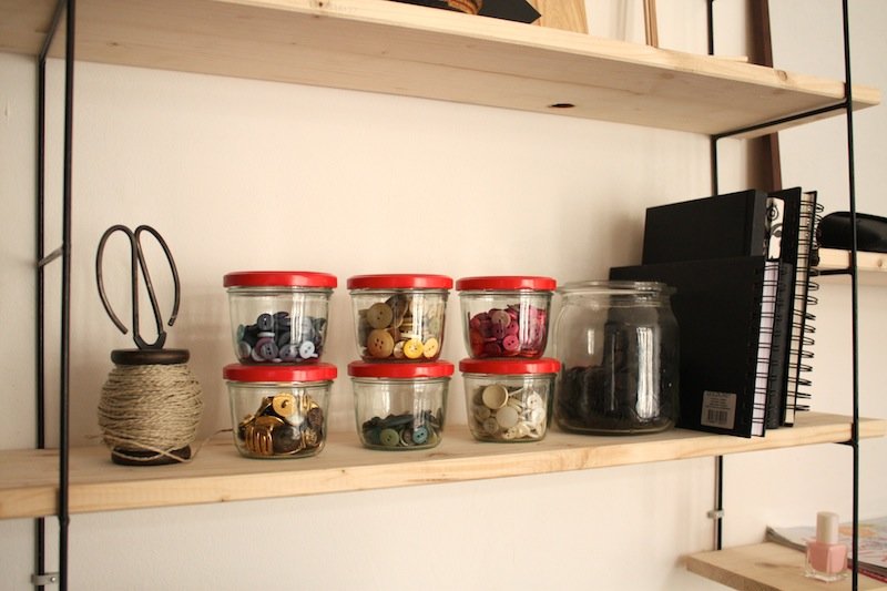 Ausgediente Gläser eignen sich hervorragend um Sammelsurien von kleinen Dingen, wie zum Beispiel Knöpfen, zu sortieren.