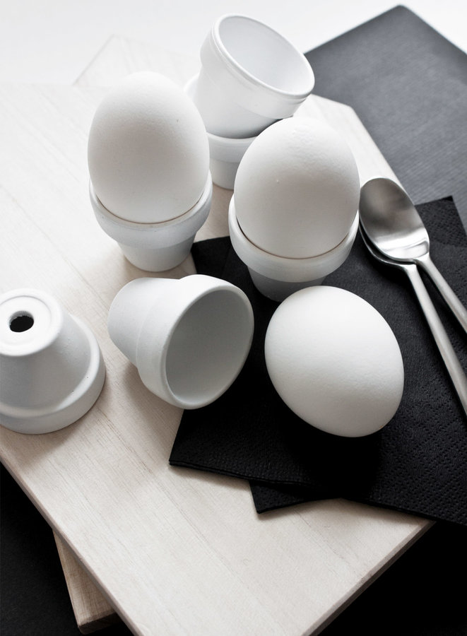 Eierbecher aus Tontöpfen mit Acrylfarbe lackiert.