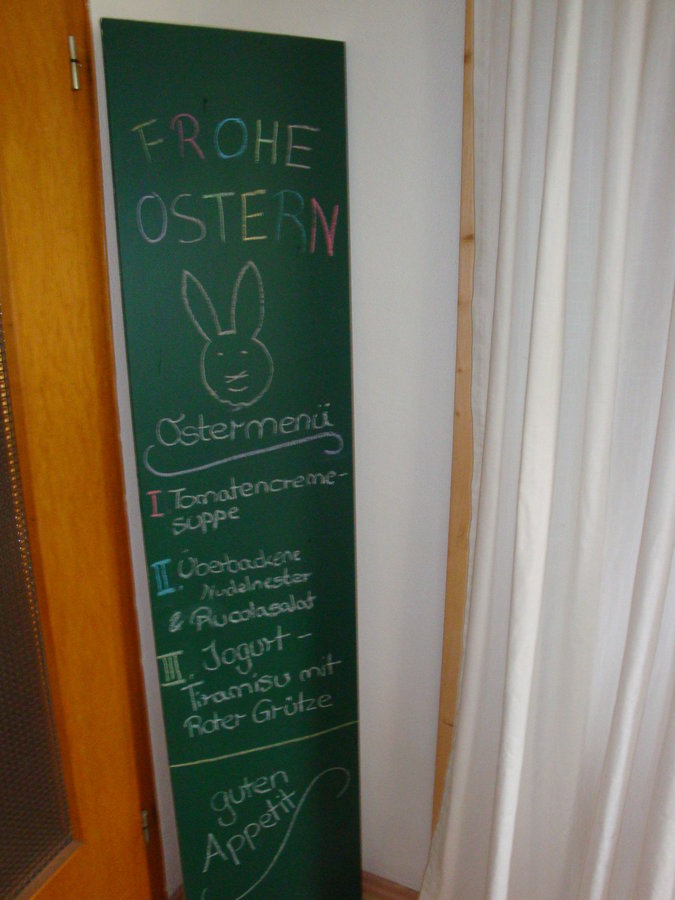 Eigentlich steht die Tafel ja in der Küche. Heute kam sie als Speisekarte zum Einsatz