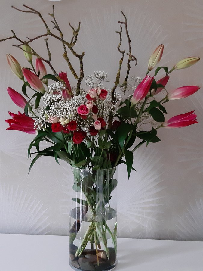 Pünktlich zum Wochenende entfaltet der Strauß seine volle Pracht. Seitdem ich im Home Office arbeite, stelle ich mir jede Woche frische Blumen ins Arbeitszimmer. Manchmal auch etwas vom Wegesrand oder einen dekorativen Ast mit etwas Gras. Aber dieser Strauß übertrifft bisher alles, was mein Büro gesehen hat und ich freue mich so sehr.