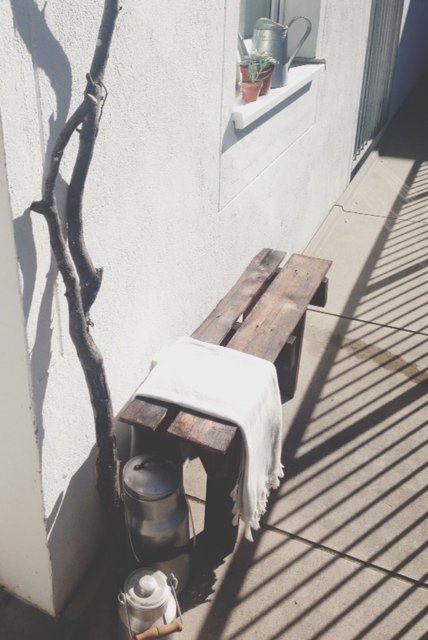 Was macht man wenn man nur einen ganz schmalen Balkon hat, aber dort trotzdem ab und an in der Sonne sitzen will? Richtig man baut sich einfach selber eine Bank die dazu passt