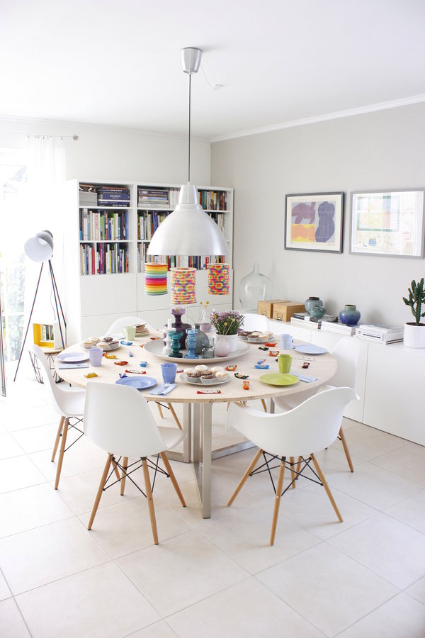 DIY Esstisch, Eames, Foto Lampe Ikea, Besta, Rice Geschirr, Esszimmer, Esstisch, Wandfarbe, Grau, Modern Wohnen, modernes Esszimmer