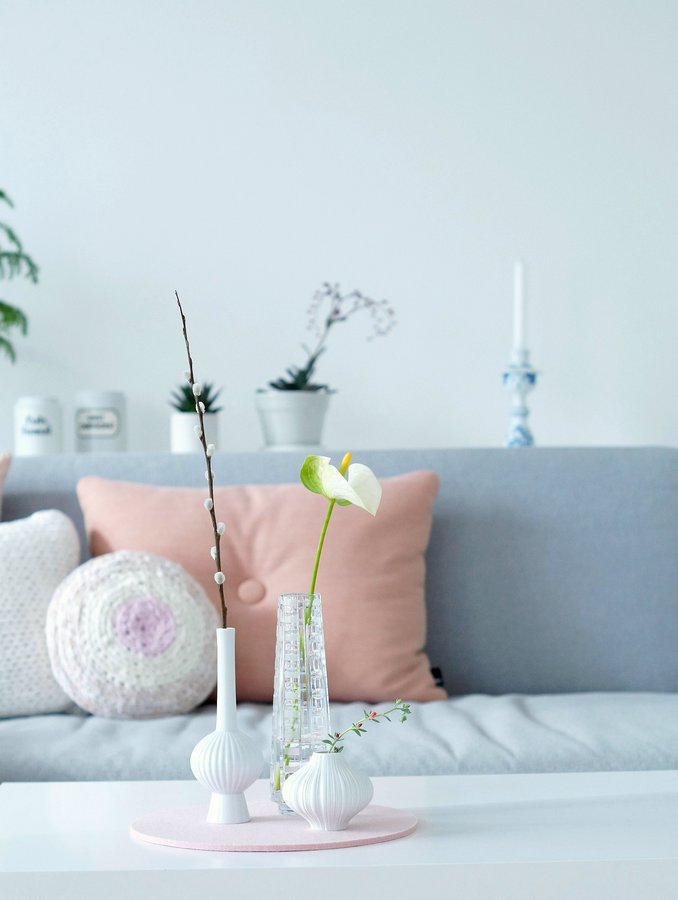 Wohnzimmer, Rosa, Pastellfarben, Vintage vasen, Palmkätzchen, Flamingoblume, Anthurium, Weiß, Kerzenleuchter
