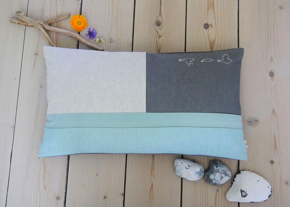 Zur Zeit ermöglicht uns das tolle Wetter viel Zeit auf unserer neuen Terrasse zu verbringen. Passend dazu habe ich ein neues Kissen genäht.