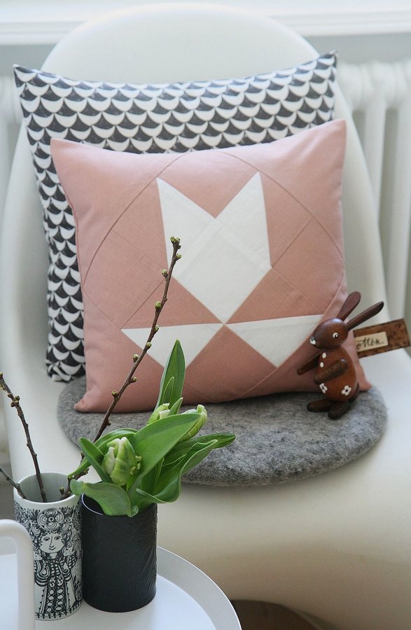 Frühling, Ostern, Tulpen, Wohnaccessoires, Wohntextilien, Kissen, Kissenbezug, Patchwork, Oaterfest, Osterdeko, Osterdekoration