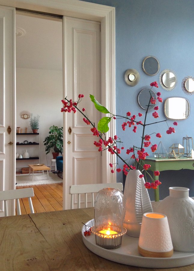 Altbau, Holzdielen, Mid century, Jugendstil, Dänisch, Dänemark, Nordsee, Graublau, Messing, 50er, alte Messingspiegel, Monstera, Sukkulenten, Stuck, Elefantenohr, Pfaffenhütchen, Bisquit Porzellan, 60er, Vintage, Urban Jungle, Schiebetür, Flügeltür, Ikea, Sunburst, mirror, Zimmerpflanzen, Palme, Ruhe des Nordens, Sammelleidenschaft, Sammlung