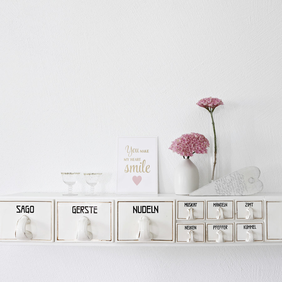 Vintage, Regal, Weiss, Gold, Pink, Küche, Schubladen, Porzellan