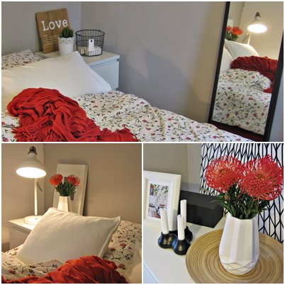 Grau weiß, Schwarz, Orange, Blumen, Prothea, Schlafzimmer