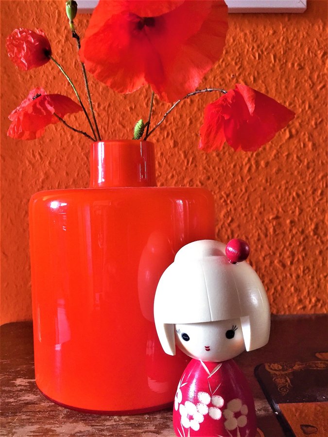 Vase Italy, Orange, Rot, Klatschmohn, Kokeshi, Japan