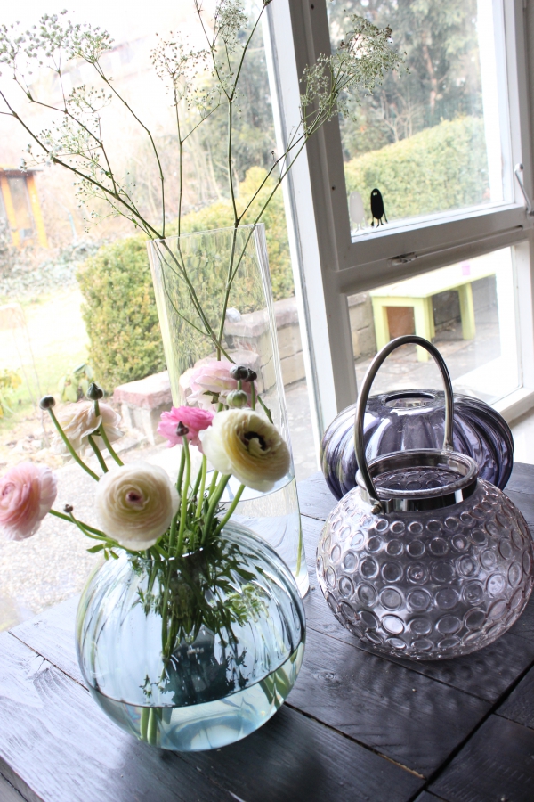 ich liebe Ranunkeln auch und deine Vasen sind toll - lg