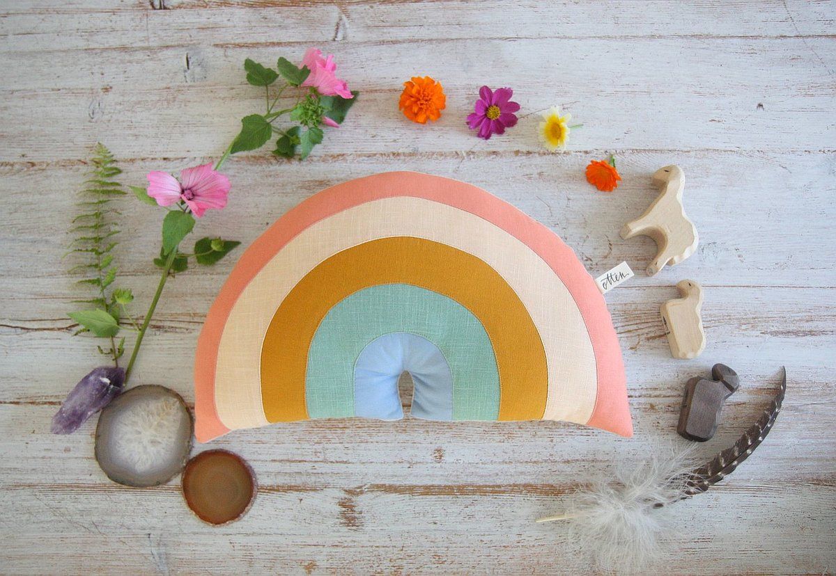 Regenbogen, regenbogenkissen, Blumen, Kristalle, Edelsteine, Schafe, Kinderkissen, Kinderzimmer, Kinderdeko