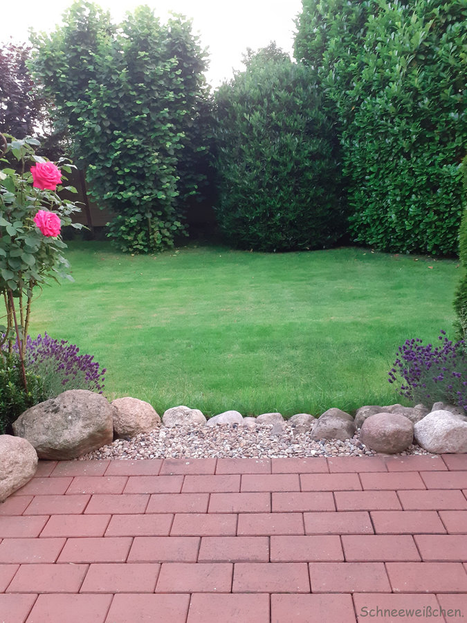 Klinkerpflaster, Findlinge, Edelrose, Lavendel