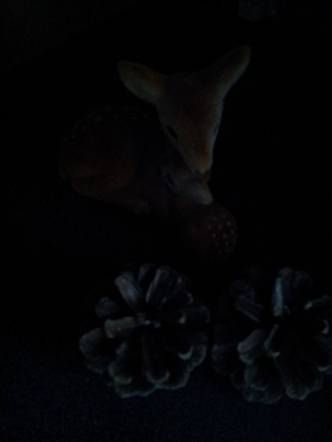 Das Reh mit kleinem Bambi hat mir eine liebe Freundin (, von der ich schon viel zu lange nichts gehört habe,) geschenkt. Ich finde es immer noch toll, und jedes Jahr bekommt es eine stille Ecke. Und über die Advents- und Weihnachtszeit sitzt es dann da, und verbreitet winterliche Ruhe.