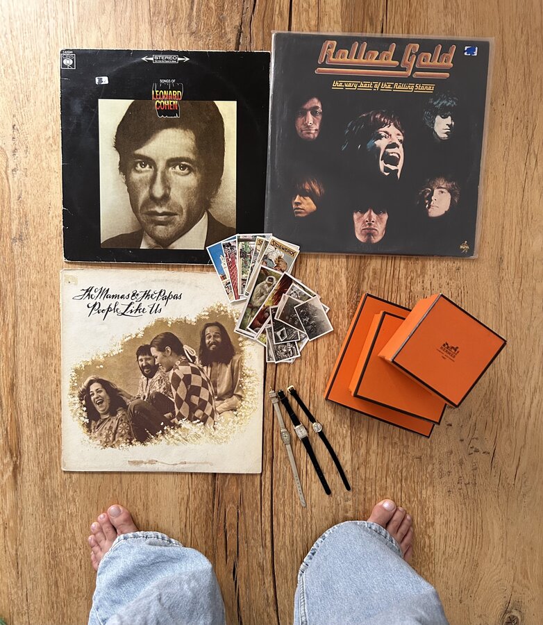 Reiche Beute vom Flohmarkt: Nachschub für meine Gallerywall, die langsam anwächst. Ein paar winzige antike Damenuhren, ihr Zifferblatt ist vielleicht 1 cm im Durchmesser, ein paar Kartons von Hermes (ist ja für die Ankleide und selbst die Kartons verströmen Eleganz) und wieder ein paar über 100 Jahre alte Sammelbildchen. Ja, selbst zwei der Schallplattencover passen ins Farbschema. Bleibt spannend. Schönen Wochenstart, liebe Wohnsinnige…