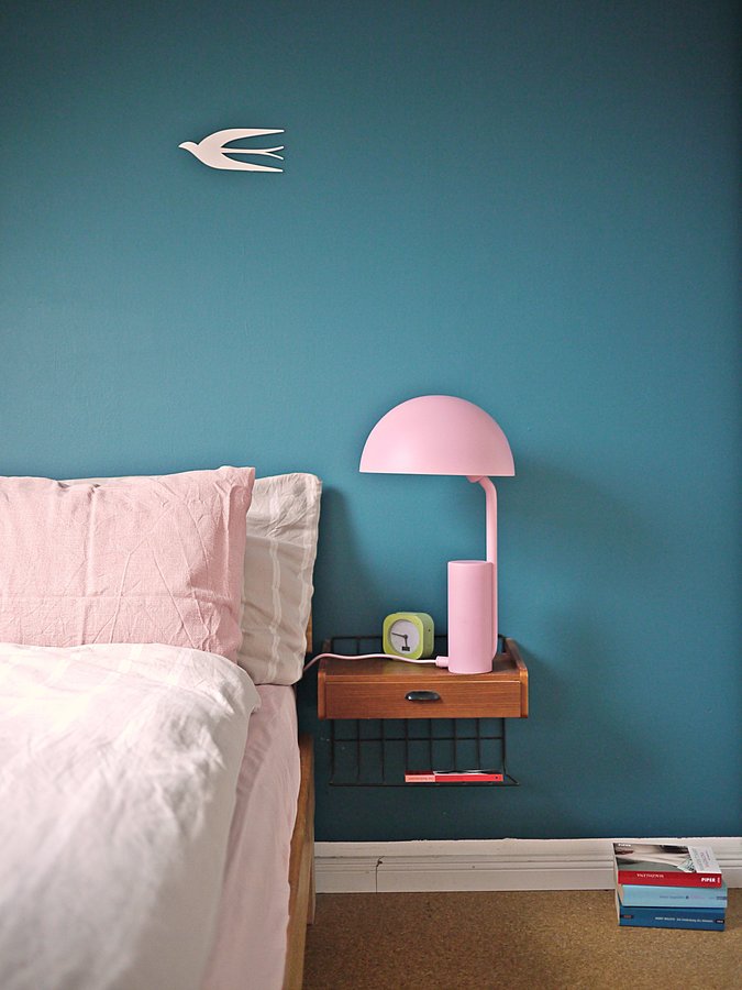 FotoFrage, Nachttisch, Schlafzimmer, Rosa, Blau, Wandfarbe blau