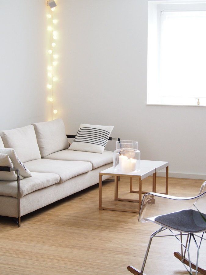 Weihnachten, Kerzen, Lichterkette, Sofa, Wohnzimmer, Glasvase, Holzboden, Parkett, Rocking Chair, Schaukelstuhl