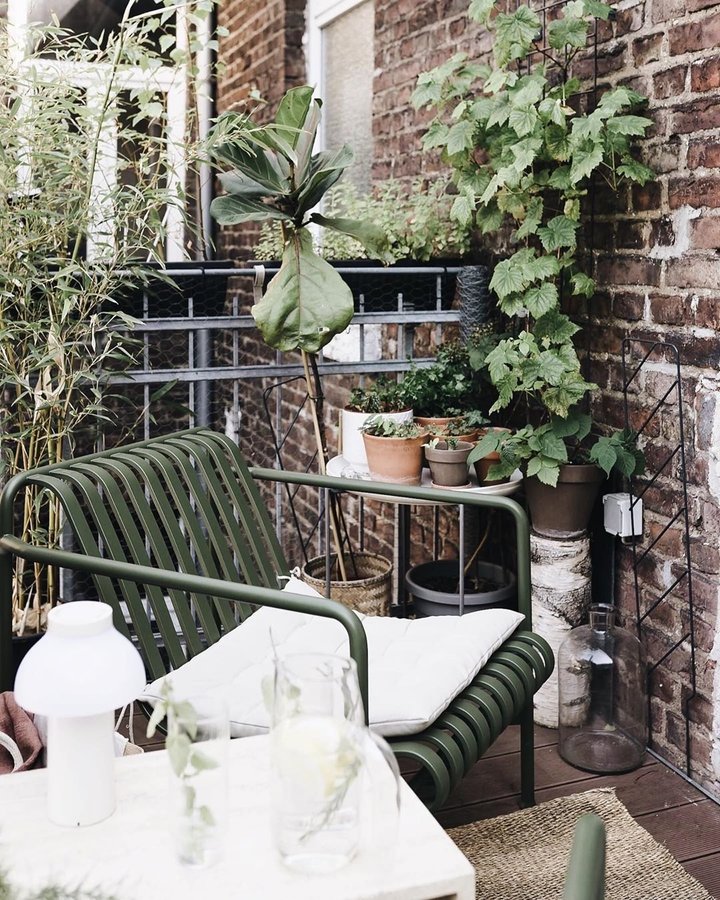 Balkon, Balkonpflanzen, Gartenmöbel, Gartenstuhl, Backsteinwand