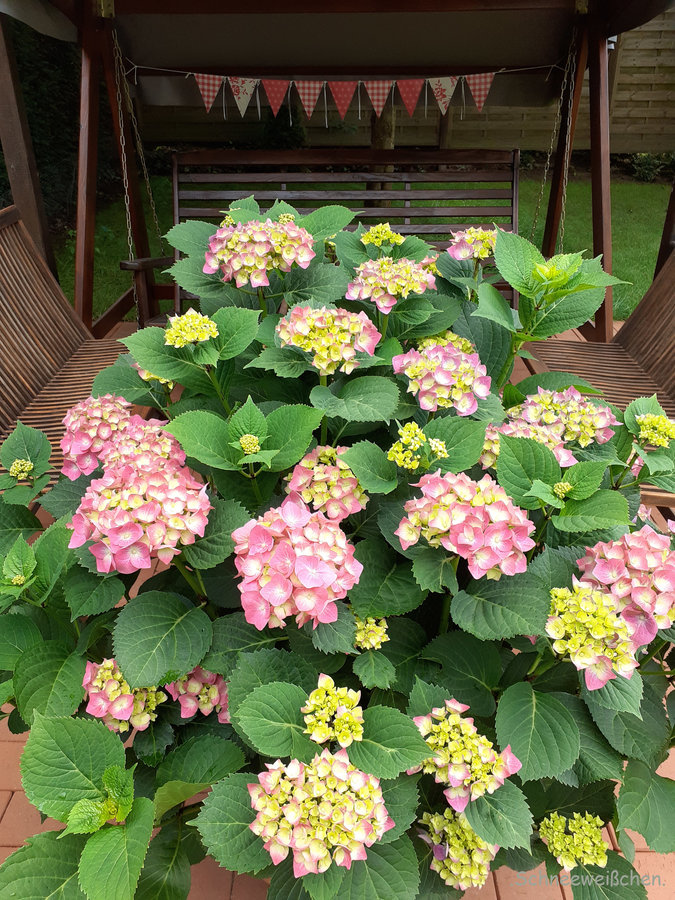 Hortensien, Hollywoodschaukel, Sitzplatz