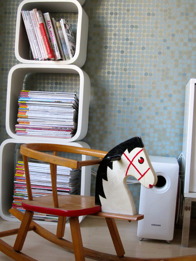 Dieses schöne, alte Schaukelpferd habe ich am Samstag für meinen Sohn auf dem Trödelmarkt erstanden.