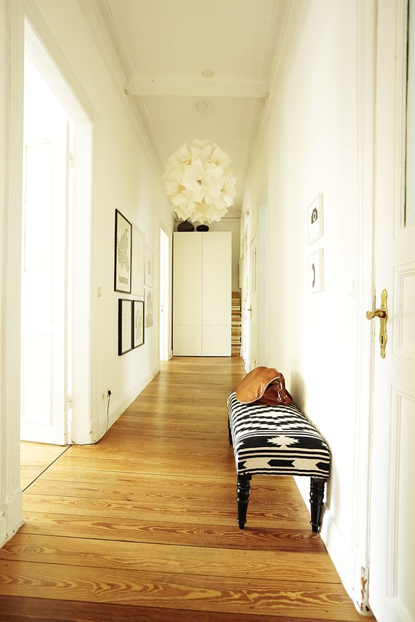Ich habe Euch ja noch gar nicht die schiefe Diele mit der großen Lampe und der Bank gezeigt- gibts doch gar nicht