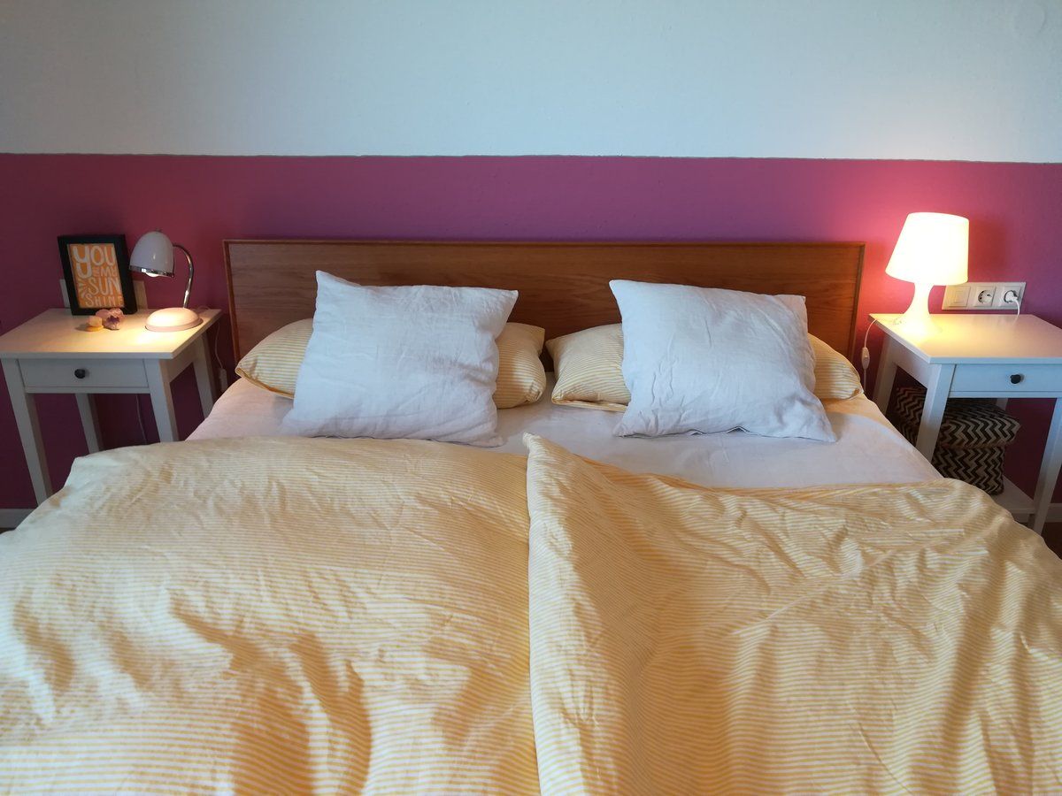 So, da haben wir mal ganz fix am Abend etwas Farbe ins Schlafzimmer gebracht. Etwas knallinger wie gedacht... Aber schon dran gewöhnt 😊