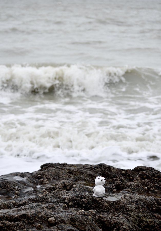 Schneemann, Schnee, in Bretagne, Unglaublich, Meer, Frankreich