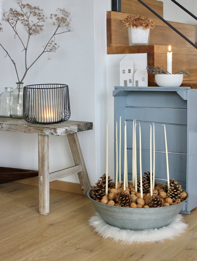 Adventsschale, DIY Bank, DIY Häuschen, Nussbaumtreppe, Kerzenschale, Windlicht, Parkett, Adventszeit, Gedicht, olle Kiste