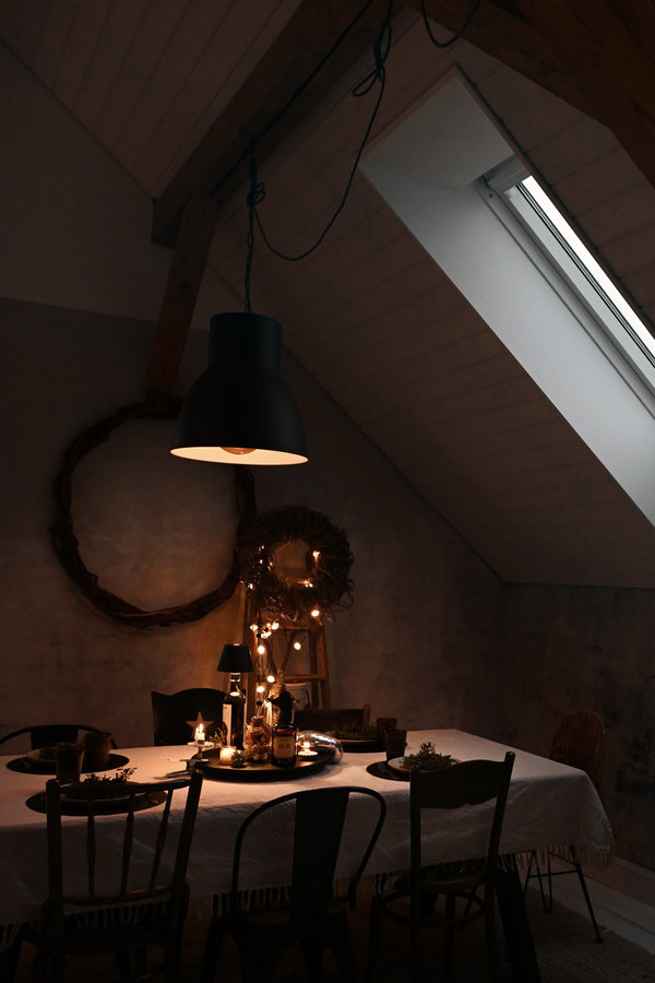 Winter, Dachfenster, Weihnachten, Tischdekoration, Abendlicht