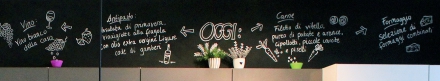 Habe die grüne Flowerpot ja in den Flur gehängt, weil sie doch etwas zu klein über dem großen Esstisch war. Die schwarze gefällt mir nun besser dort. Habe auch schon wieder ne neue Tafelbeschriftung, die ich ein bisschen mit dem Accessoires kombiniert habe: ein paar Trauben "fallen" z.B. in eine echte Schüssel und hinter den echten Sträuchern kommen auch noch gemalte hervor