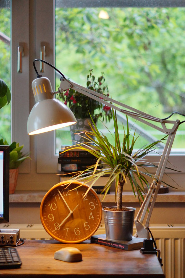 Schreibtisch, Arbeit, Blick ins Grüne