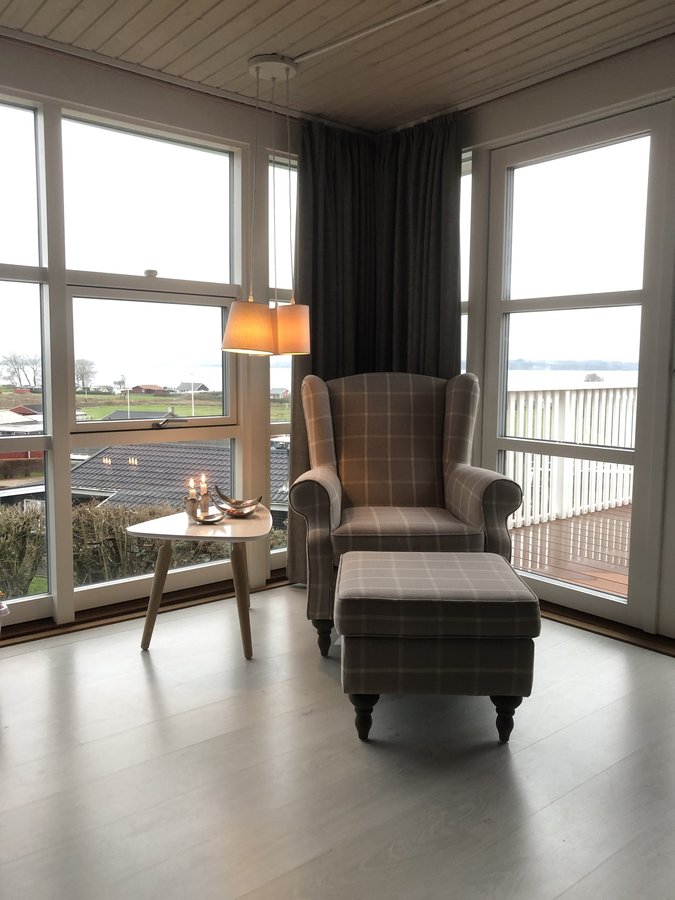 Selbe Ecke, anderer Sessel. Wir haben etwas herum arrangiert und der Sessel passt hier noch besser als der grazile Graue, finde ich.
