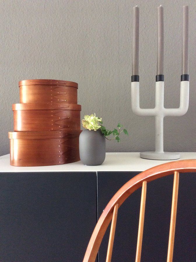 Dosen, Holz, Shaker, Kerzenständer, Wandfarbe Grau, Vase