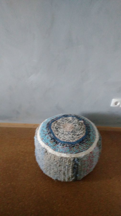 Mein selbstgehäkeltes Sitzkissen aus alten T Shirts und Stoffresten