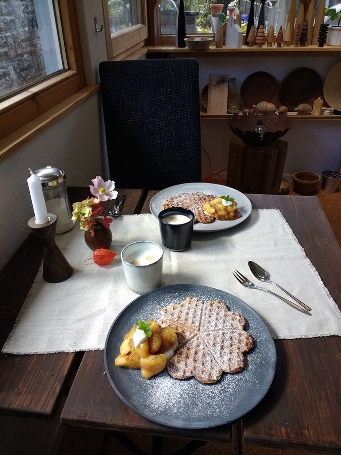 ...so erst aufgestanden Migräne 😢 und jetzt Hunger lecker Waffeln mit Apfelkompott und neues Geschirr ❤️😍 liebe Grüße herbi 😘