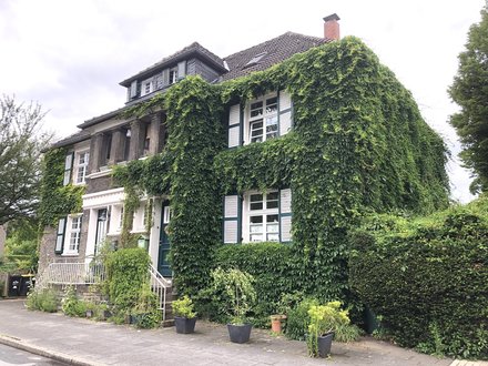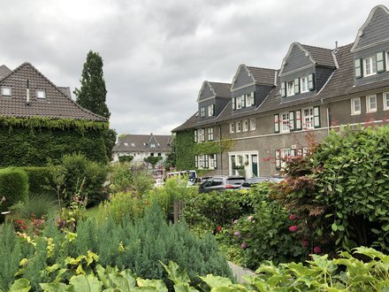 So leb ich zum Glück nicht - für mich zu dunkel. Aber so stellte man sich damals eben „gutes Wohnen“ vor: ein Stück lebendige Architekturgeschichte. Gestern waren wir in einem Hotel in der Margarethenhöhe in Essen. Gestiftet von Margarete Krupp anläßlich der Vermählung ihrer Tochter Berta. 115 Hektar. Die erste Gartenstadt in Deutschland, um auch armen Familien menschenfreundliches Wohnen im Grüne zu ermöglichen. Wie ein in sich geschlossenes Dorf als Teil der Stadt. 935 Gebäude mit fast 3100 Wohneinheiten. Alles entworfen von einem einzigen Architekten.