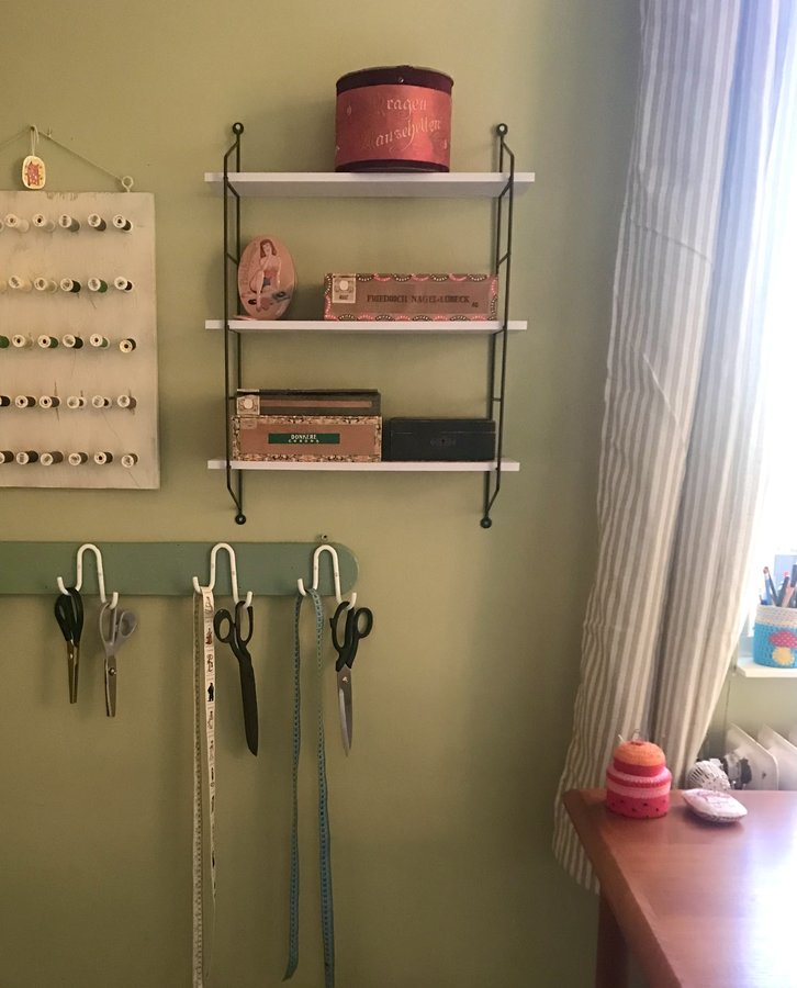 Arbeitszimmer, Atelier, Wandfarbe grün, String, Vintage, Diy