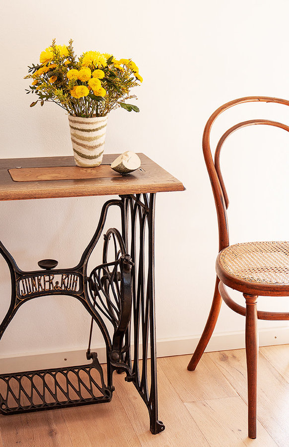 FotoFrage, Wohnzimmer, Filzvase, Antike Möbel, Keramikkunst, Frühling