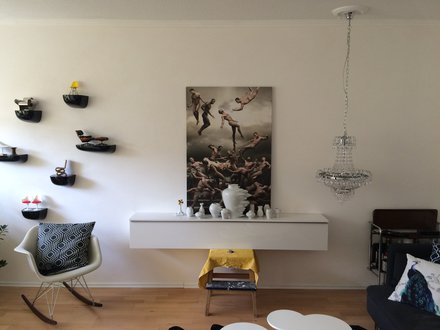 So mein Wohnzimmer ist nun weiß und nicht mehr bunt ( schwär, rot, Kupfer, weiß). Habe nun auch die Möbel umgestellt. Bin noch nicht sicher ob sie so bleiben oder ob ich doch wieder alles so hinstellen soll wie vorher. Wenn sie so bleiben, dann kommt der Fernseher vor das große Fenster, dafür fehlt aber noch ein Schrank.