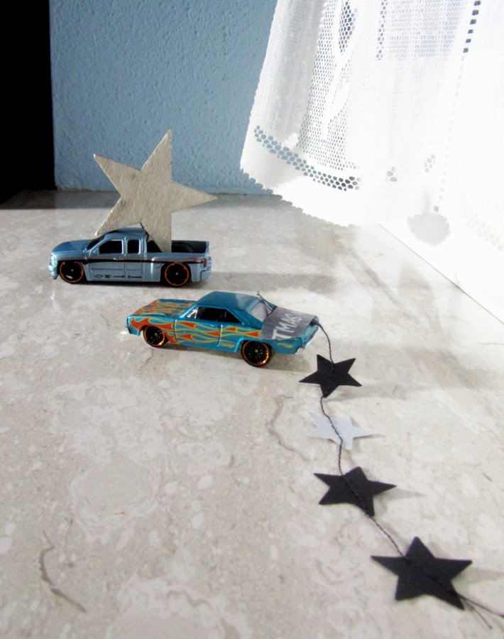Spielzeugautos, Holzstern, Papiersterne, Weihnachten