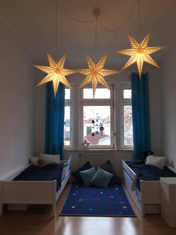 Wir haben ein seperates Spielzimmer für unsere Kinder, so konnten wir einen Raum schaffen der unseren Rabauken ( 2 Jahre) ein bisschen Ruhe gönnt. Jetzt haben sie einen Sternenhimmel der bei Bedarf mit dem Dimmer zum Schlummerlicht verwandelt werden kann.