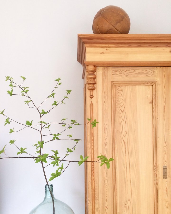 Holzschrank, Leder, Ball, Weinballon, Frühling, Zweig