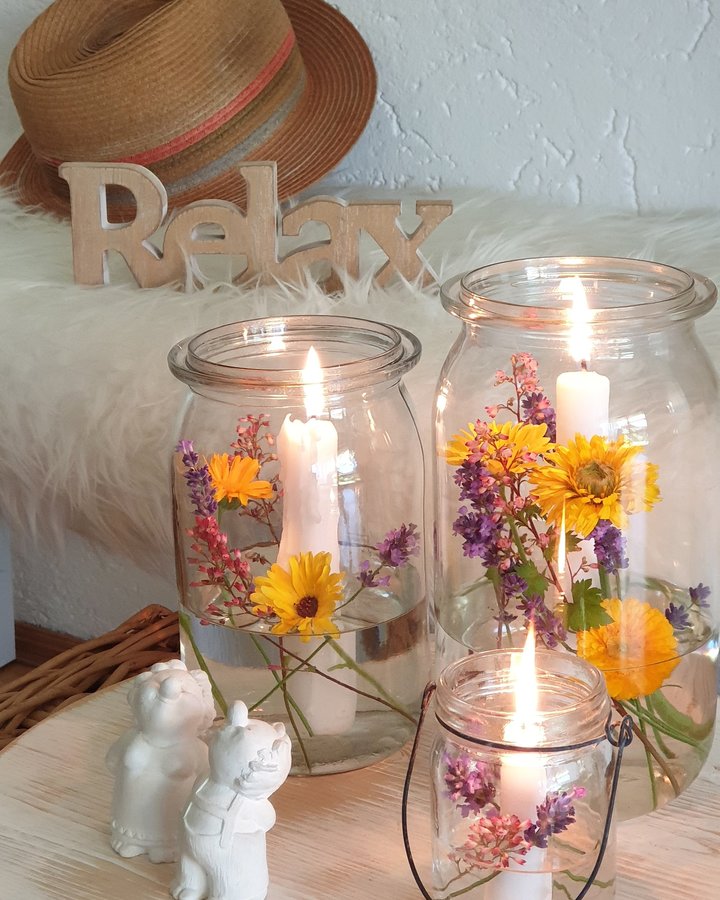 Windlicht, Weckgläser, Kerzenlicht, Schriftzug