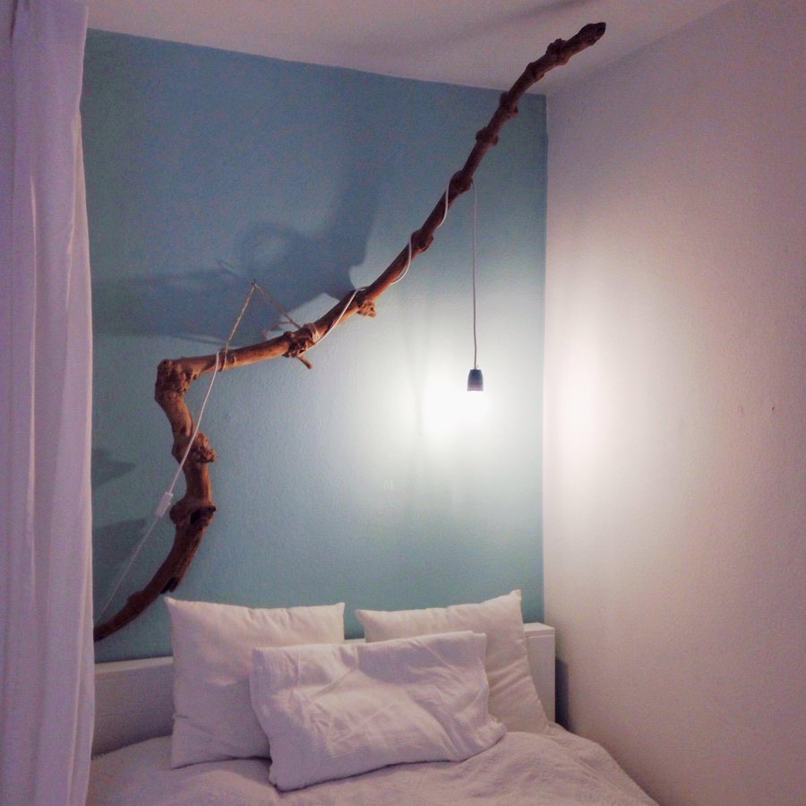 Bett, Lampe, Diy, Do it yourself, Kreativ, Schalfzimmer, Wandfarbe, Blau, Diy