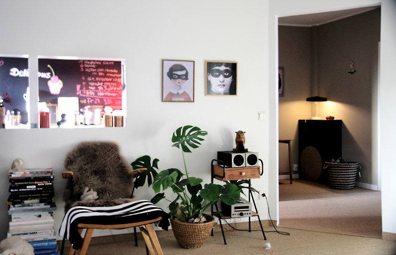 Sisal, Katze, Durchbruch, Tür, raus, Wandfarbe, Putz, Fell, mid, century, basket, Chair, Monstera, Teak, Holz, Fornasetti Tapete, Korb, Natur Korb, Lampe, Topfpflanze