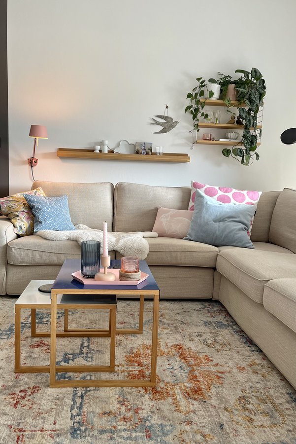 Rosa, Sofaecke, Blau, Schwalbe, Sommer 2022, Rosa Lampe, Blaues Kissen
