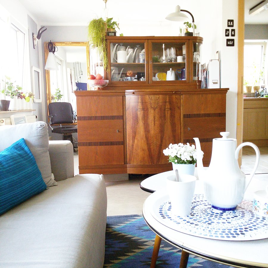 Buffet, Teekanne, MayDay Grcic, Türkis, Teppich, Friseurstuhl, Spiegel